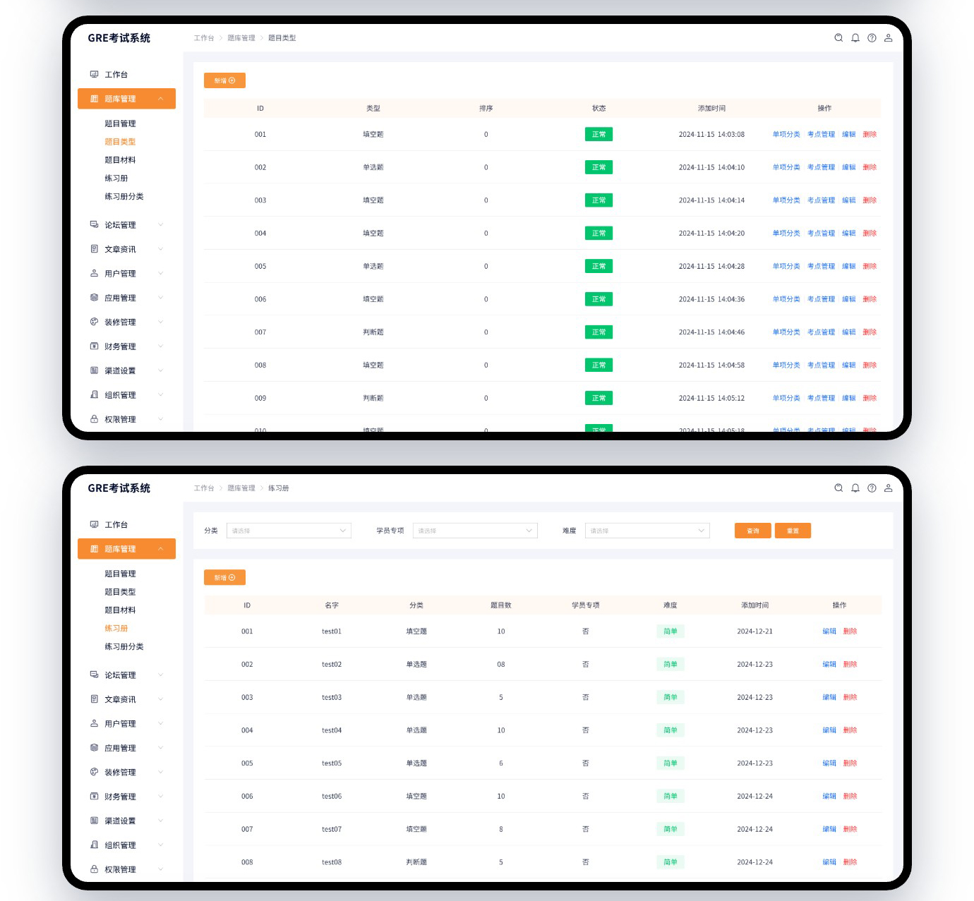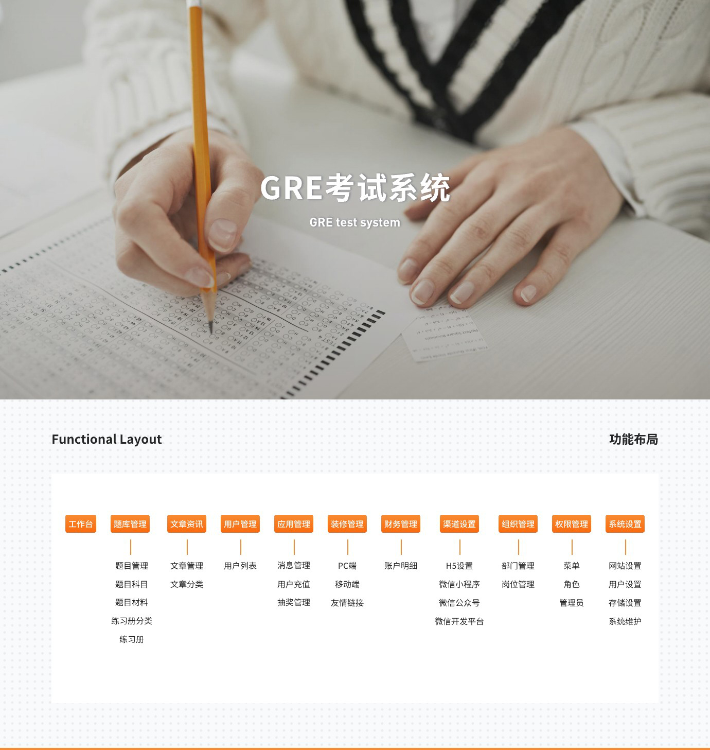 這是給客戶開發的一套GRE考試系統,是去年找我們開發過GMAT考試系統,覺得我們做的還是可以的,后面又找我們做了GRE考試系統。這次在GMAT的基礎上增加了背單詞的功能。整套系統功能還是算比較強大的了。
